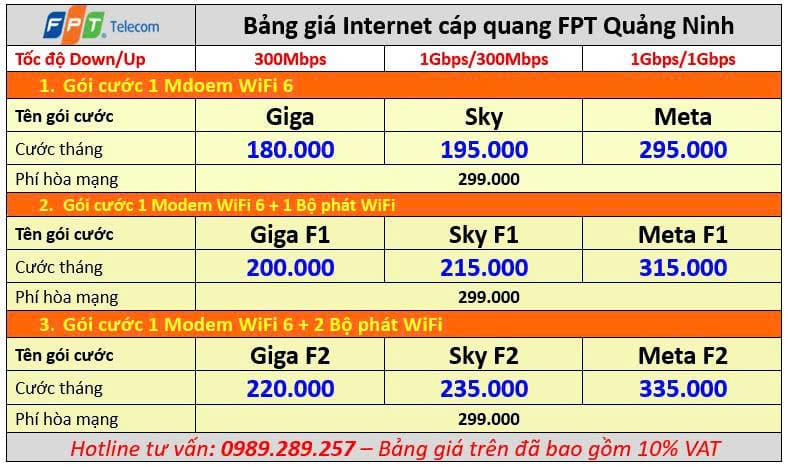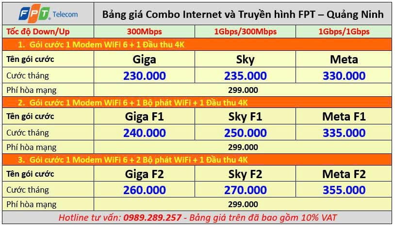2. Bảng giá Lắp Mạng FPT tại Quảng Ninh