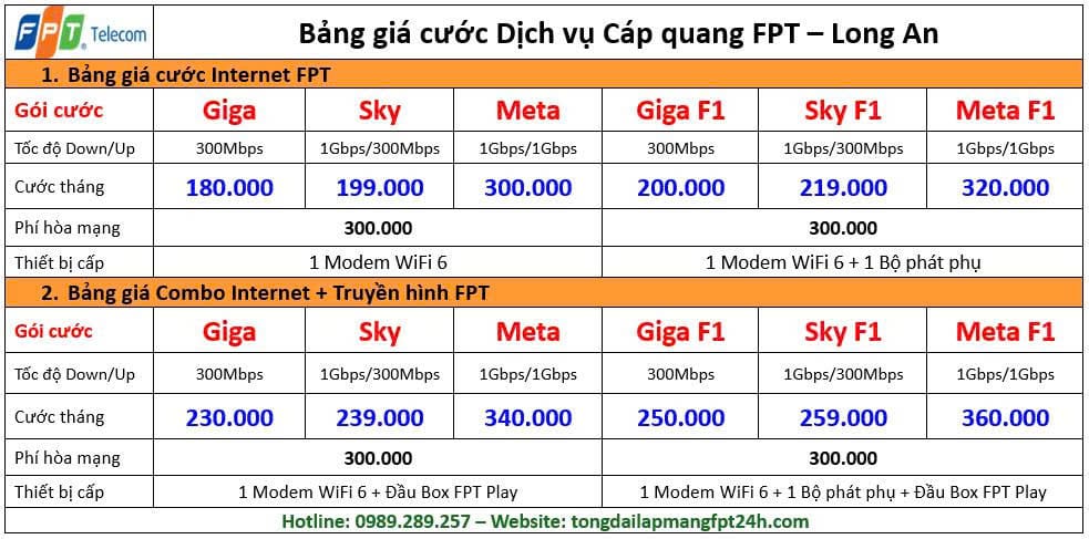 Lưu ý: Vui lòng gọi Hotline 0909.175.969 để nhận báo giá chi tiết và các ưu đãi mới nhất cho gói cước cá nhân và gia đình FPT tại Long An.